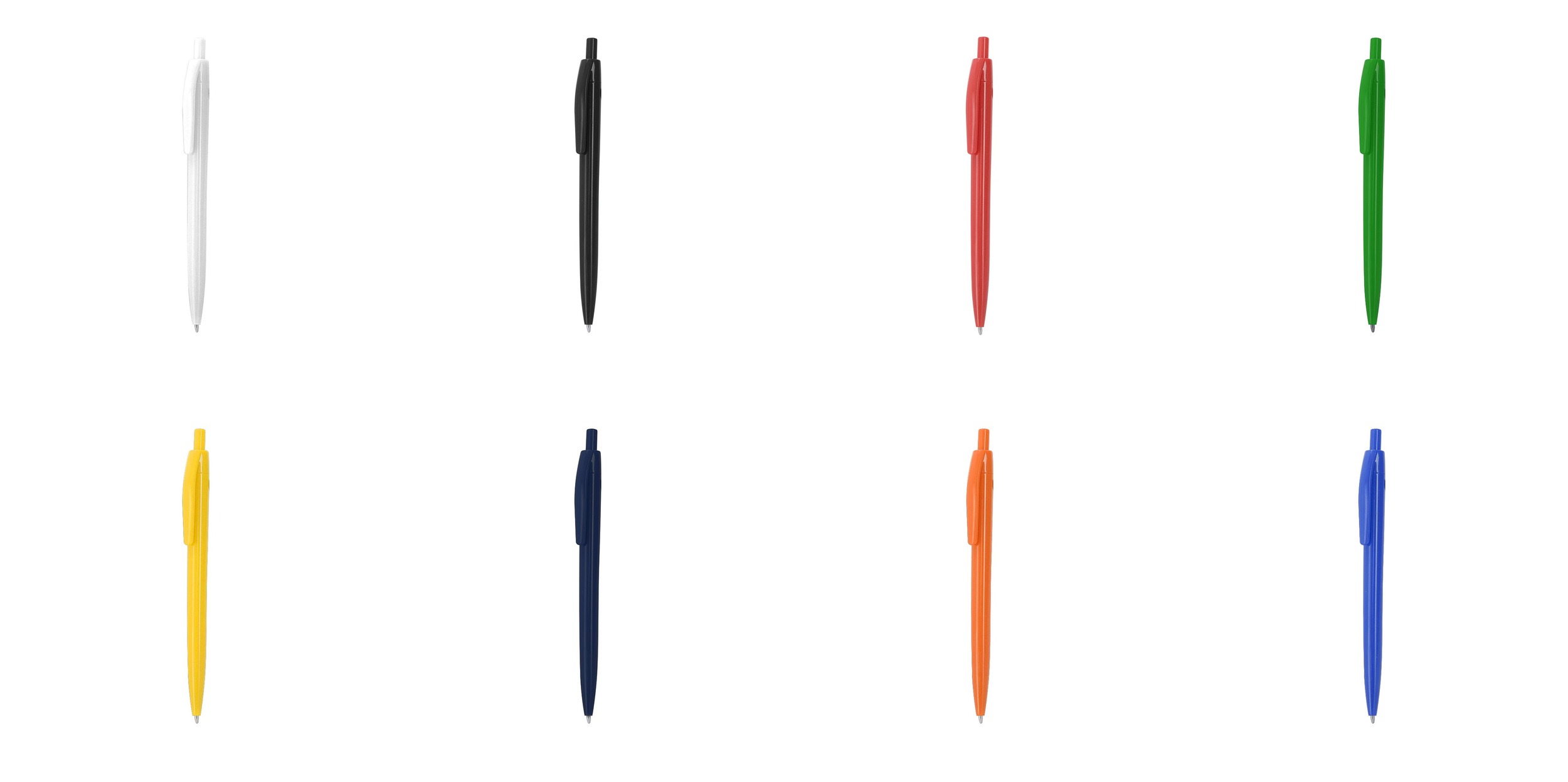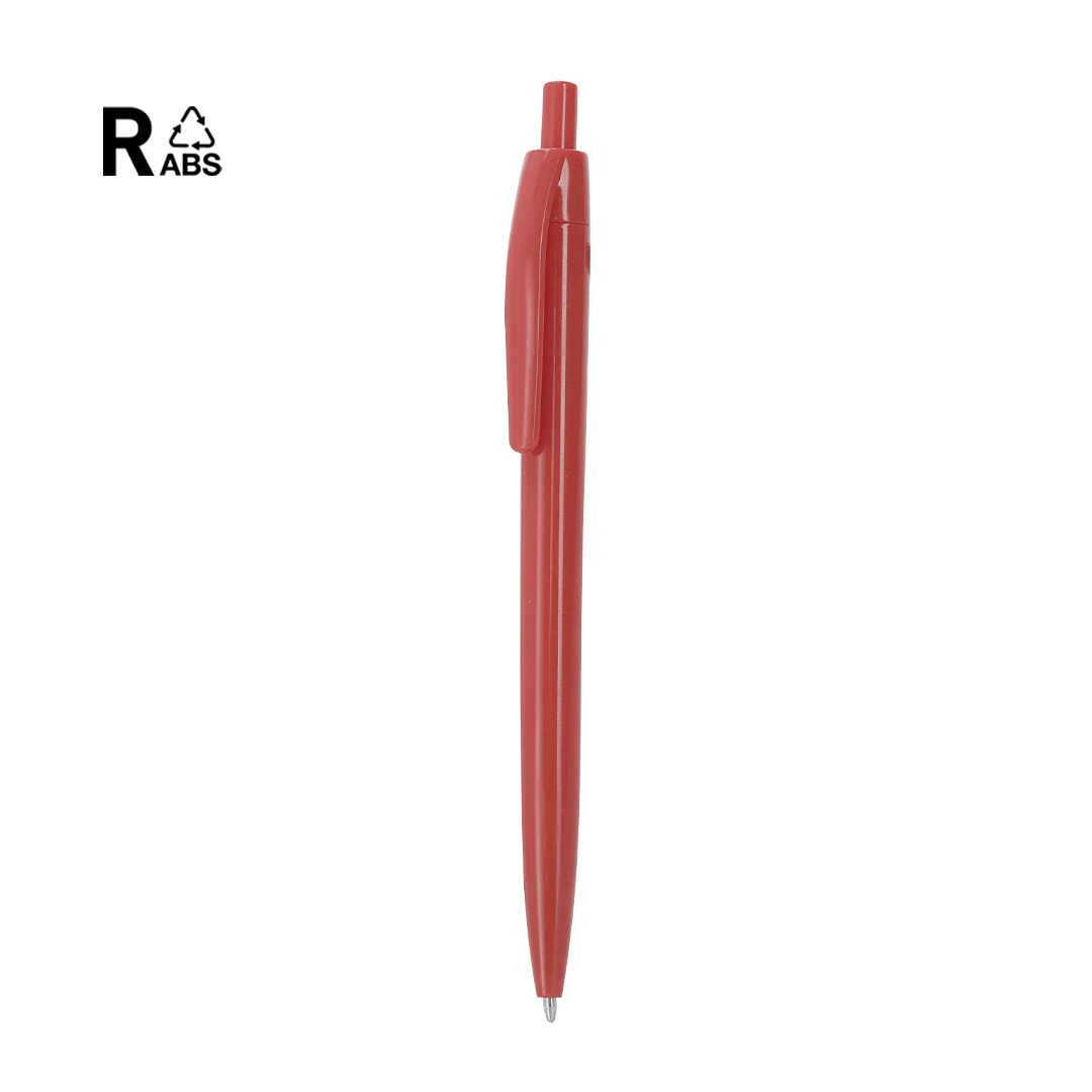 Bolígrafo fabricado en RABS. Clip de mecanismo pulsador y en tinta azul. Distintivo RABS en la parte superior del bolígrafo.