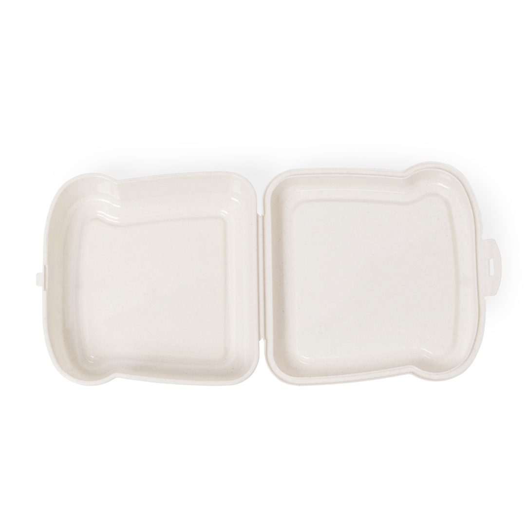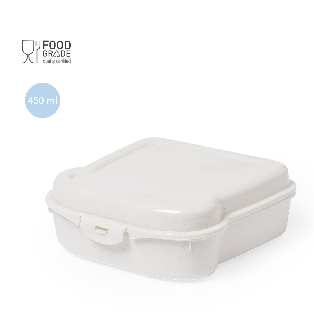 Fiambrera para sandwich de 450 ml de capacidad en color natural. Con cierre de seguridad.