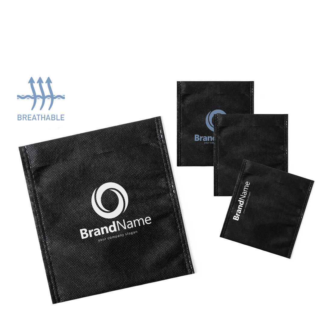 Funda multiusos fabricada en tejido non-women de color negro y acabado termosellado, transpirable y lavable. De tamaño compacto e ideal para impresión.