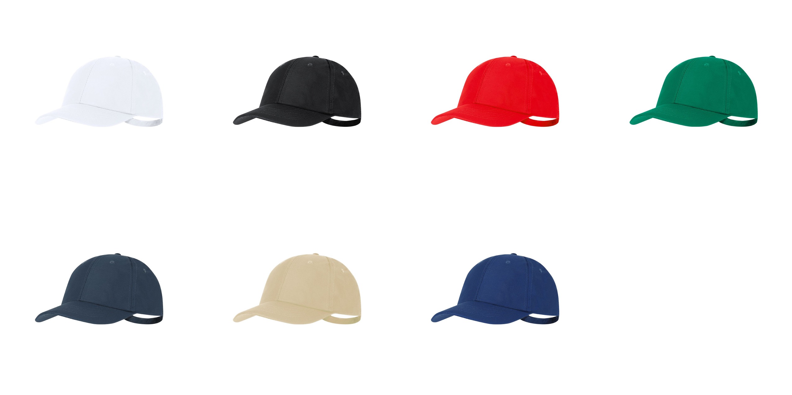 Gorra deportiva de 5 paneles en poliéster RPET con protección UV50. Ajustable cierre de hebilla metálica y orificios de ventilación bordados. Con logotipo de RPET y UV en etiqueta.