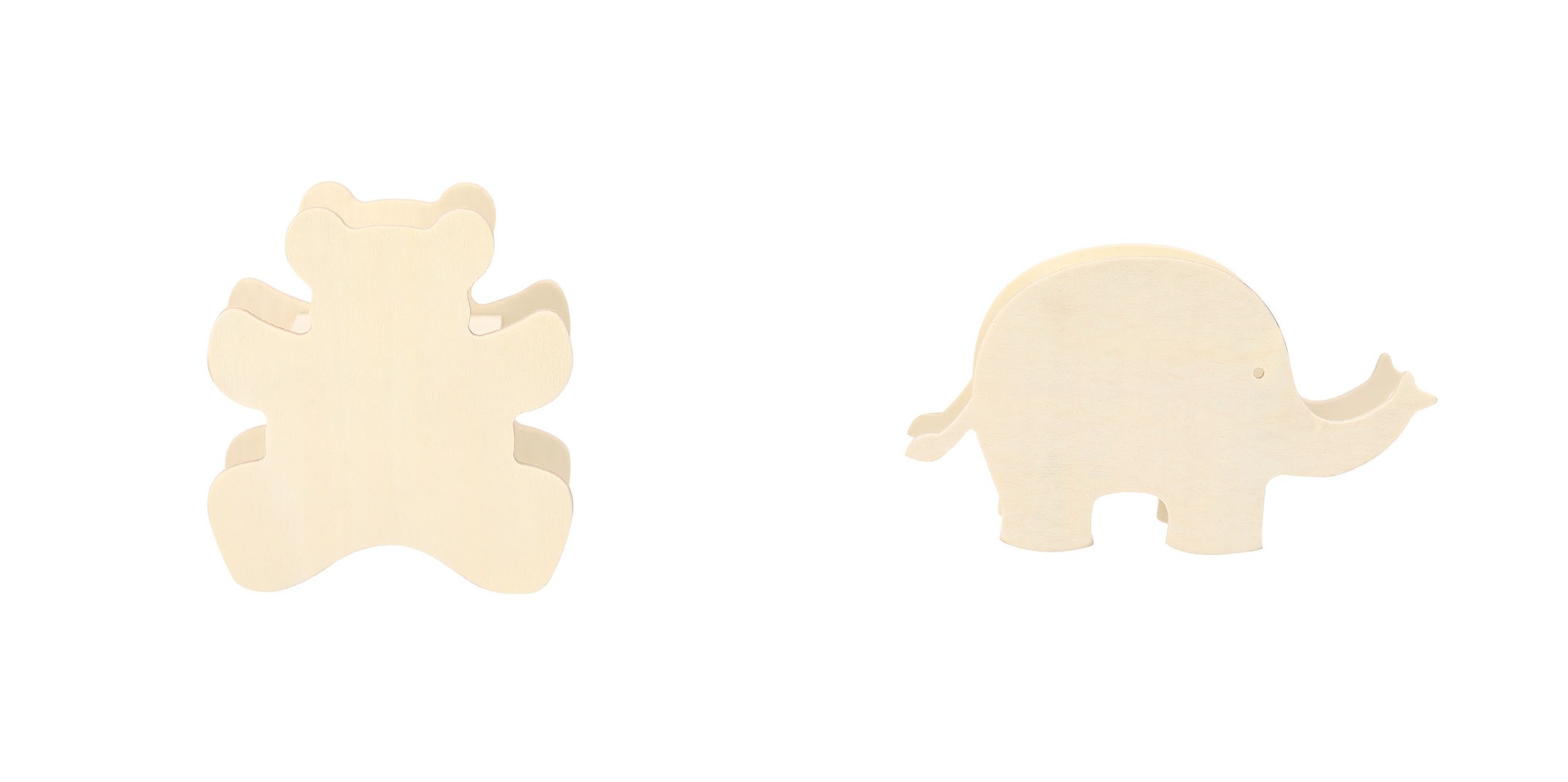 Hucha fabricada en madera natural con diseño de animales. Incluye ceras de colores que permite personalizar el diseño de cada hucha. Incorpora práctico agujero inferior para acceder fácilmente a los ahorros sin necesidad de romperla.