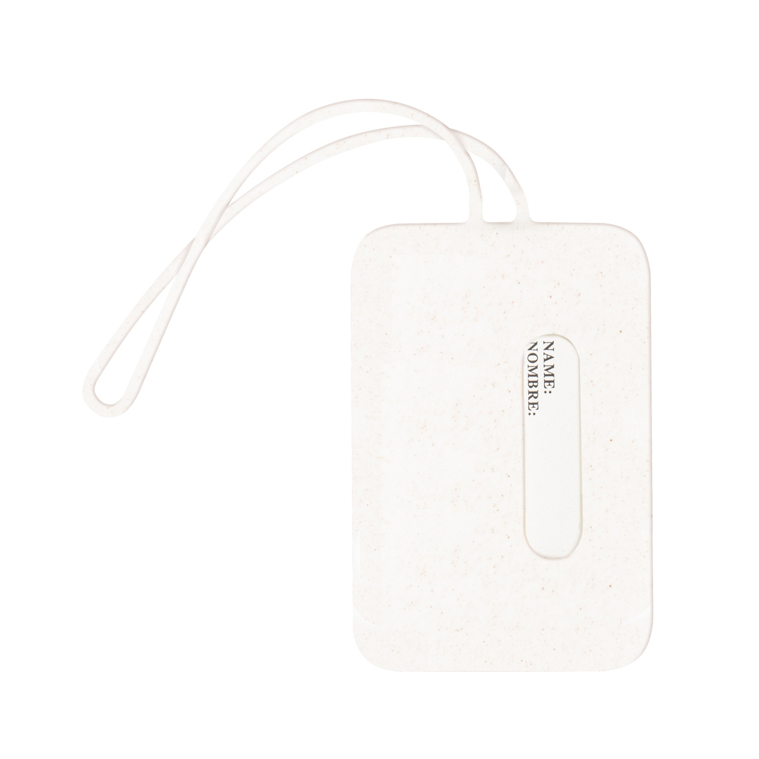 Identificador para maletas fabricado en bambú y silicona veteada. Para sujetar a cualquier maleta gracias a su cinta flexible e indicar información básica. Fabricado en silicona con efecto natural, con placa central en bambú. Presentado en bolsa individual de papel reciclado.