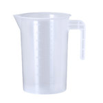 Jarra medidora de 4L fabricada en resistente PP transparente con asa. Con medidor lateral en tramos de 100 ml / 5oz y vertedor en el borde para evitar derrames.