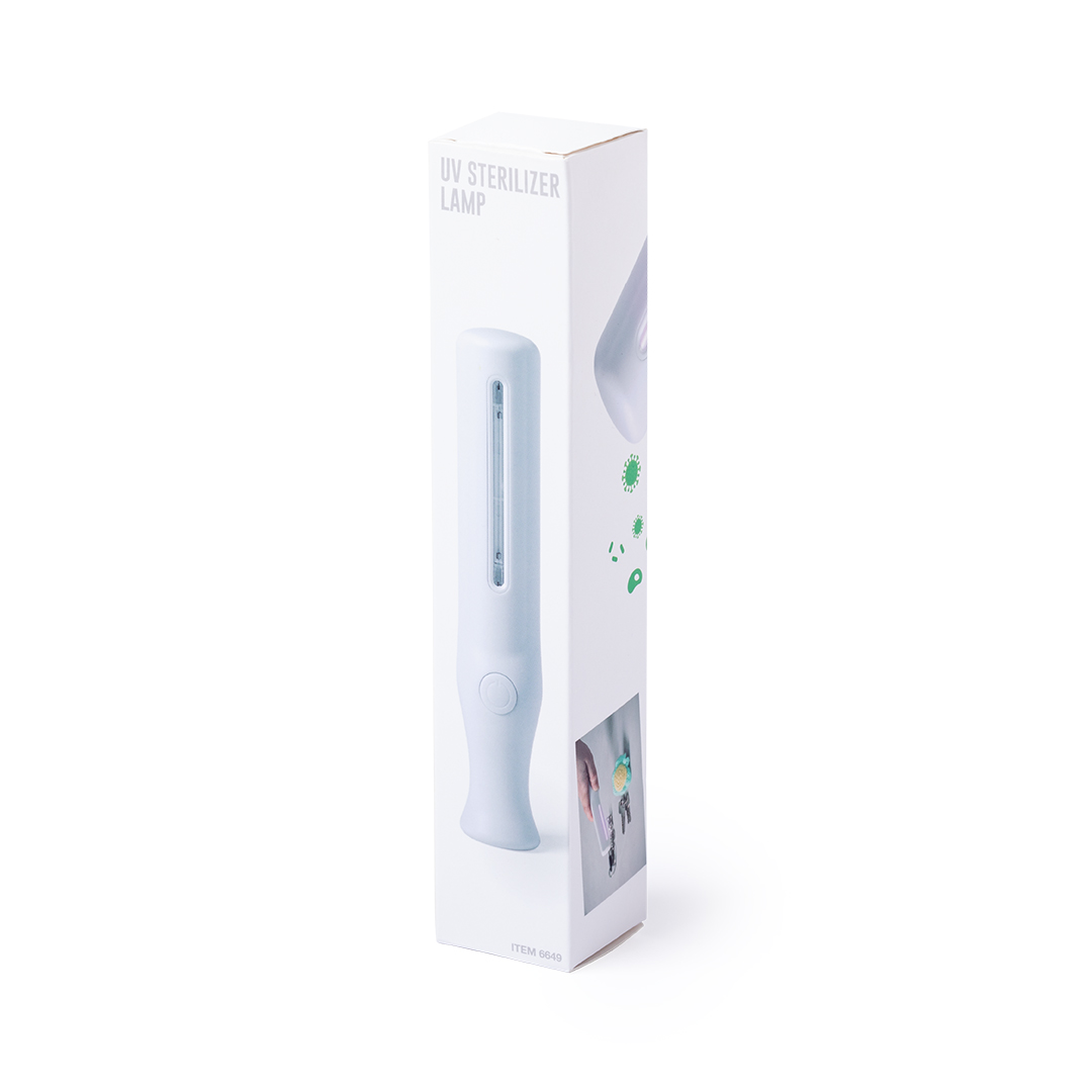 Lámpara esterilizadora de luz ultravioleta tipo C. Especialmente diseñada para la eliminación de microorganismos y bacterias en objetos de uso cotidiano como el smartphone, el carrito de la compra, el volante del coche o la ropa.