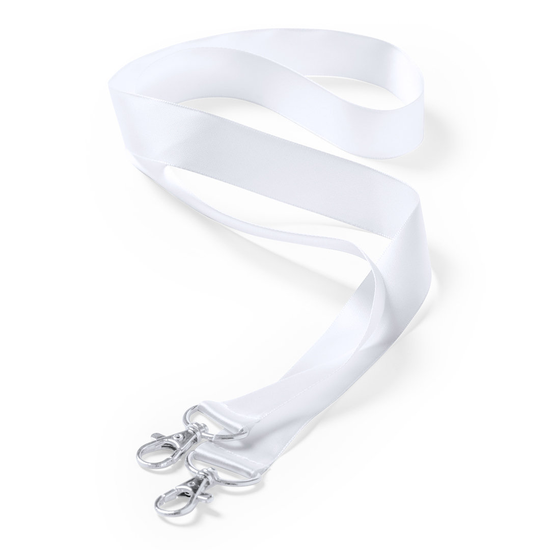 Original lanyard con mosquetón metálico en cada extremo. Fabricado en resistente poliéster y especialmente diseñado para marcaje en sublimación.