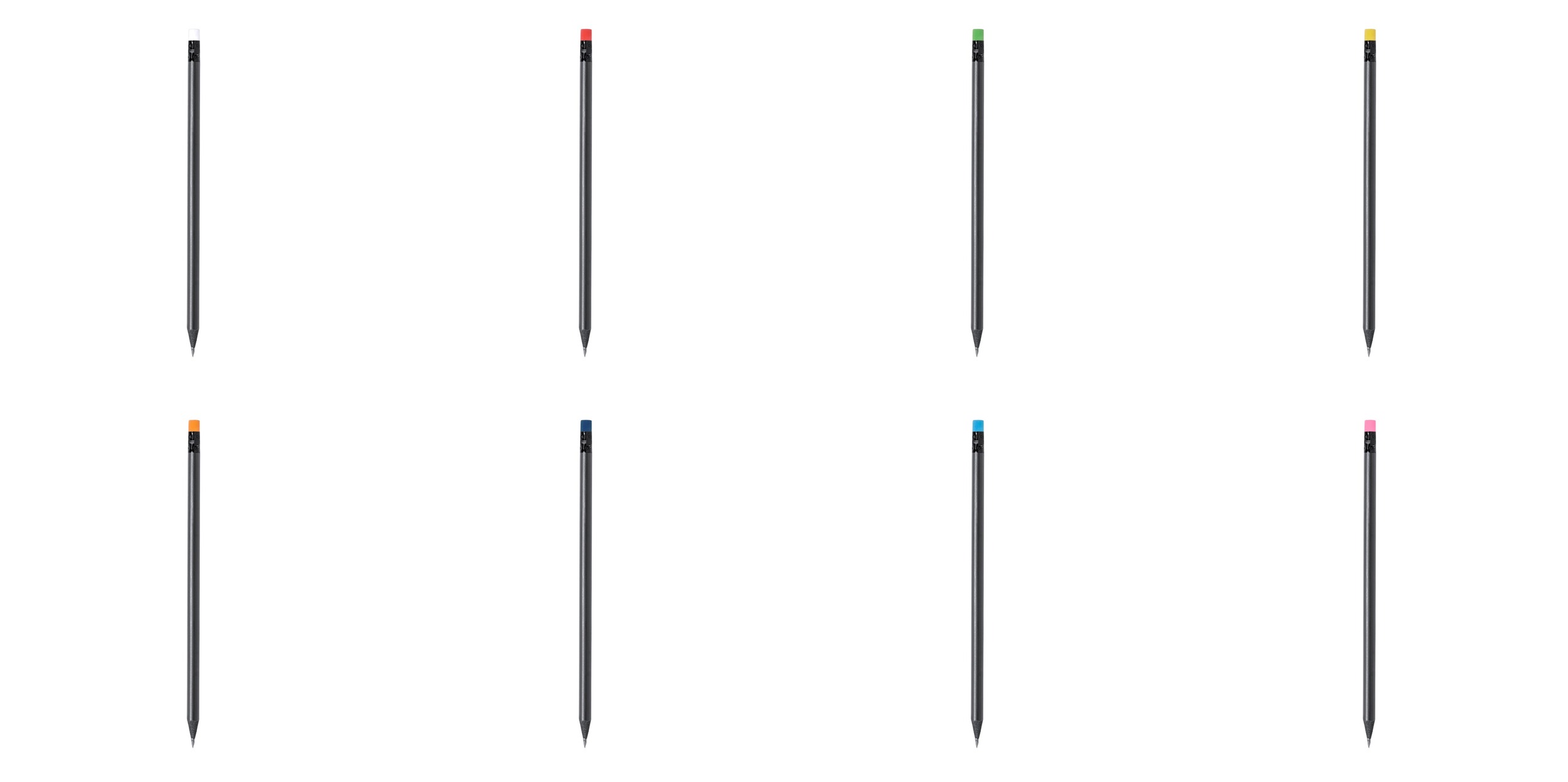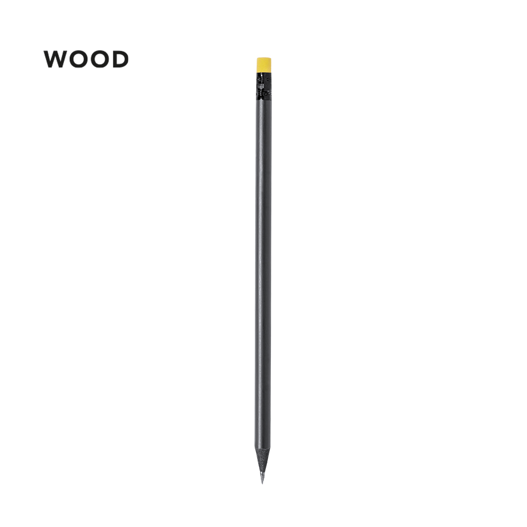 Elegante lápiz de color negro fabricado en madera natural, con práctica goma y disponible en diversos colores. Con mina negra y punta afilada.