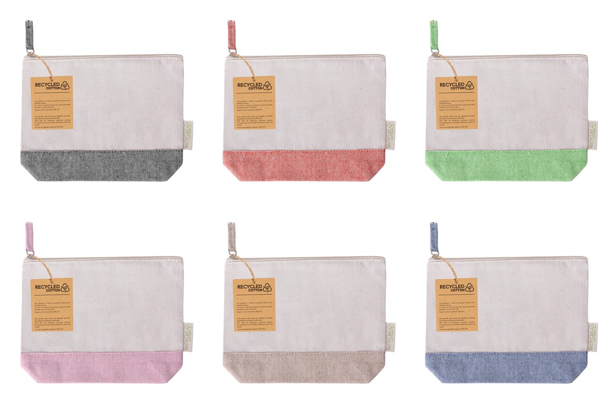Neceser elaborado en algodón reciclado. Compartimento principal de cierre de cremallera y tirador de color a juego con la base. Disponible en variada gama de vivos colores. Con logotipo algodón reciclado en etiqueta.