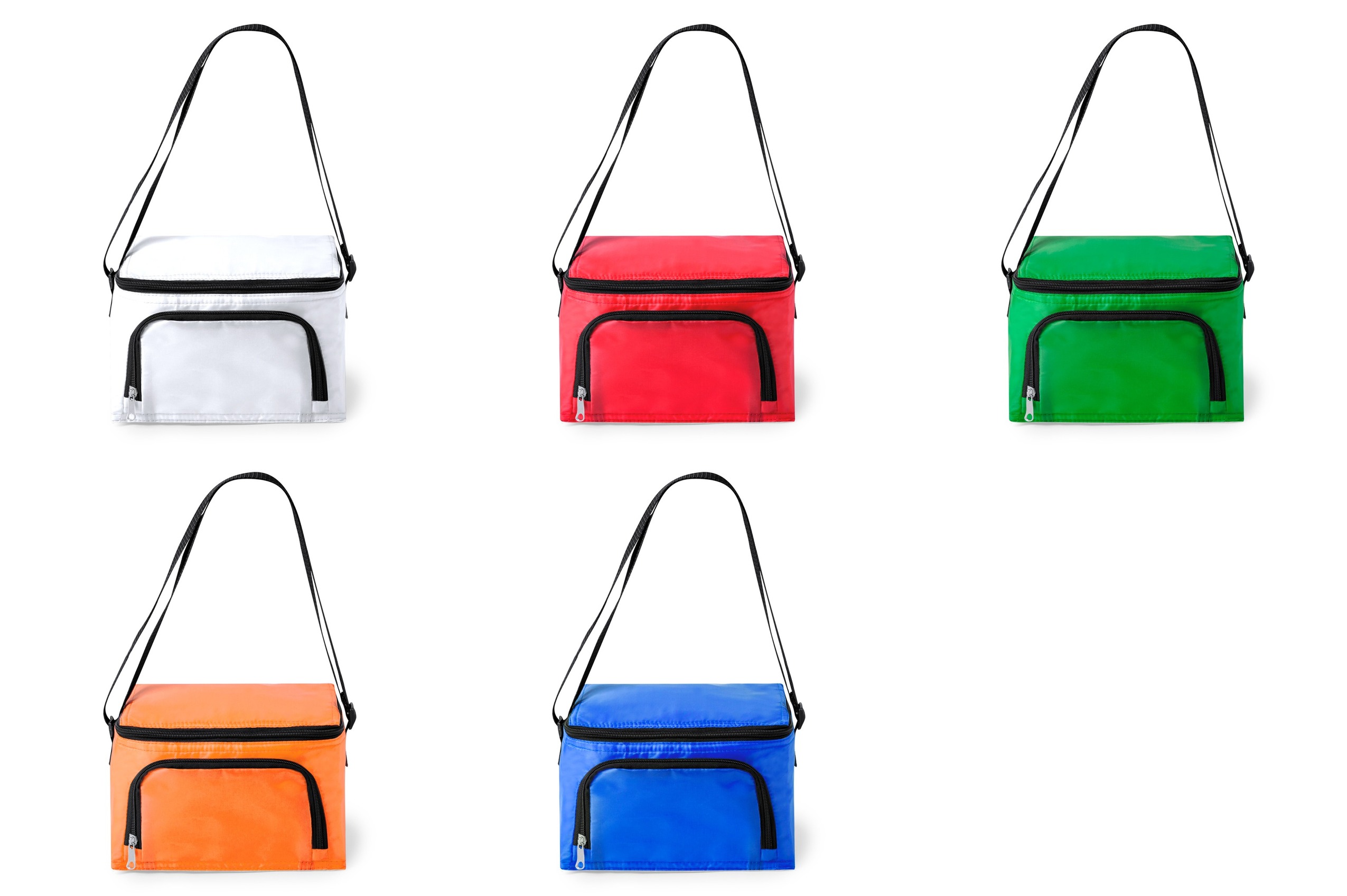 Nevera resistente con cierre de cremallera y amplio bolsillo frontal y cinta bandolera ajustable. Disponible en variada gama de colores, con detalles y accesorios en color negro.