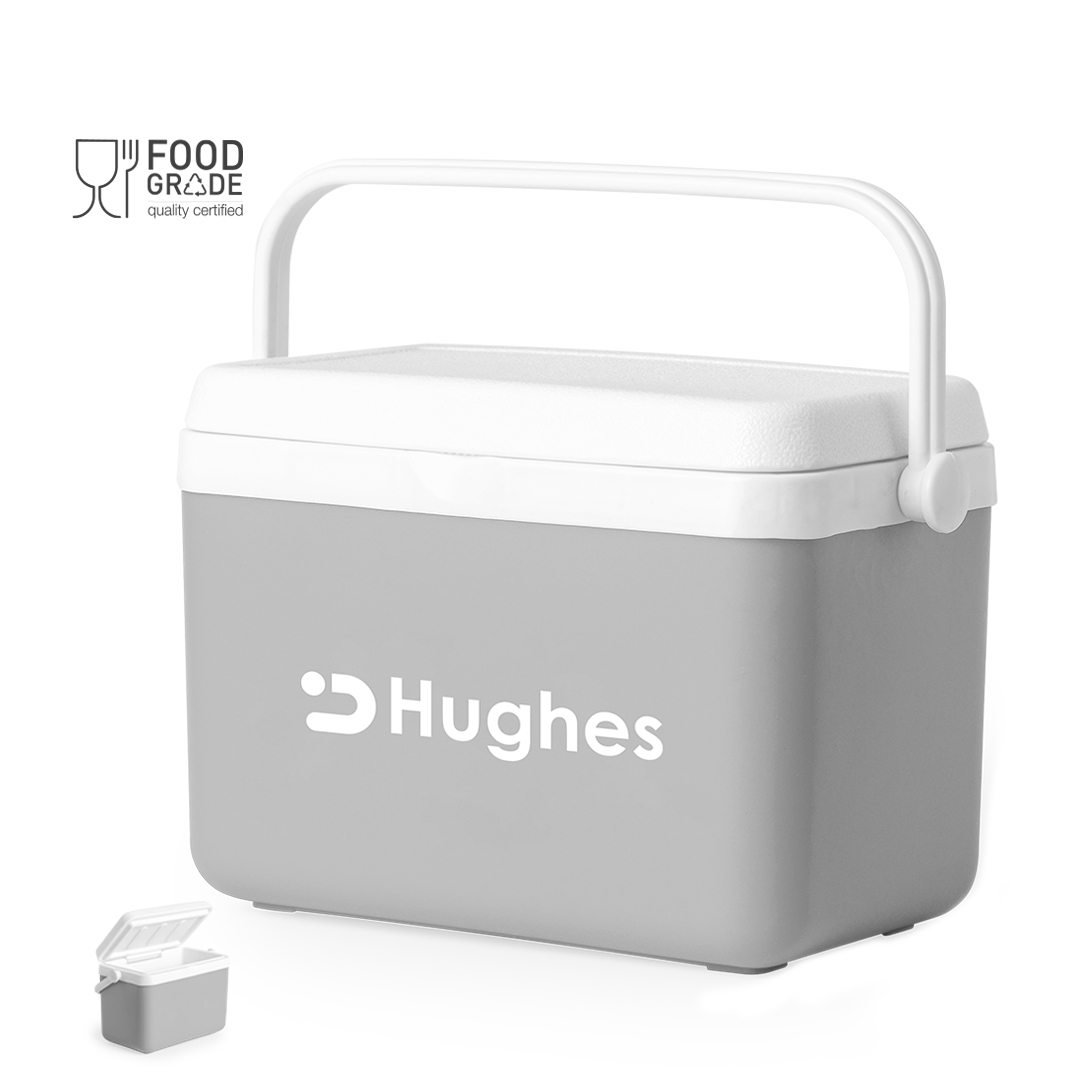 Nevera fabricada en PP de 4L. Atractivo diseño vintage para mantener bebidas y alimentos fríos, de diseño rígido con doble pared. Tapadera de bisagra con cierre de seguridad y asa rígida para un fácil transporte. Con base de color gris y accesorios en blanco. Presentada individualmente en bolsa reciclada.