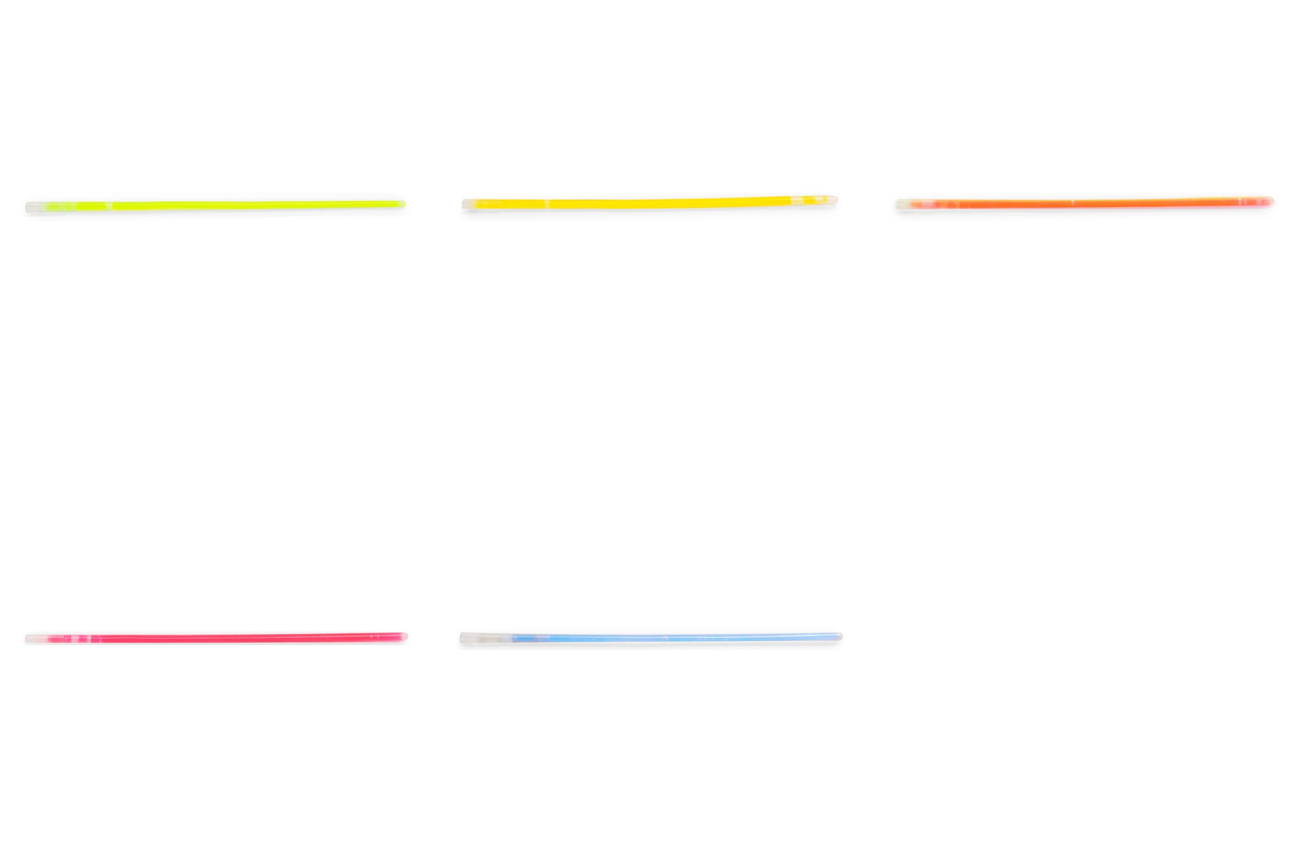 Divertidas pulseras fluorescentes con luz de neón, que se activan fácilmente al doblarlas y agitarlas varias veces para que comiencen a brillar. Gracias a sus enganches, es posible unir varias pulseras para confeccionar un collar o distintas figuras. Disponibles en una amplia gama de colores vivos y presentadas en cajas de 100 unidades por color.