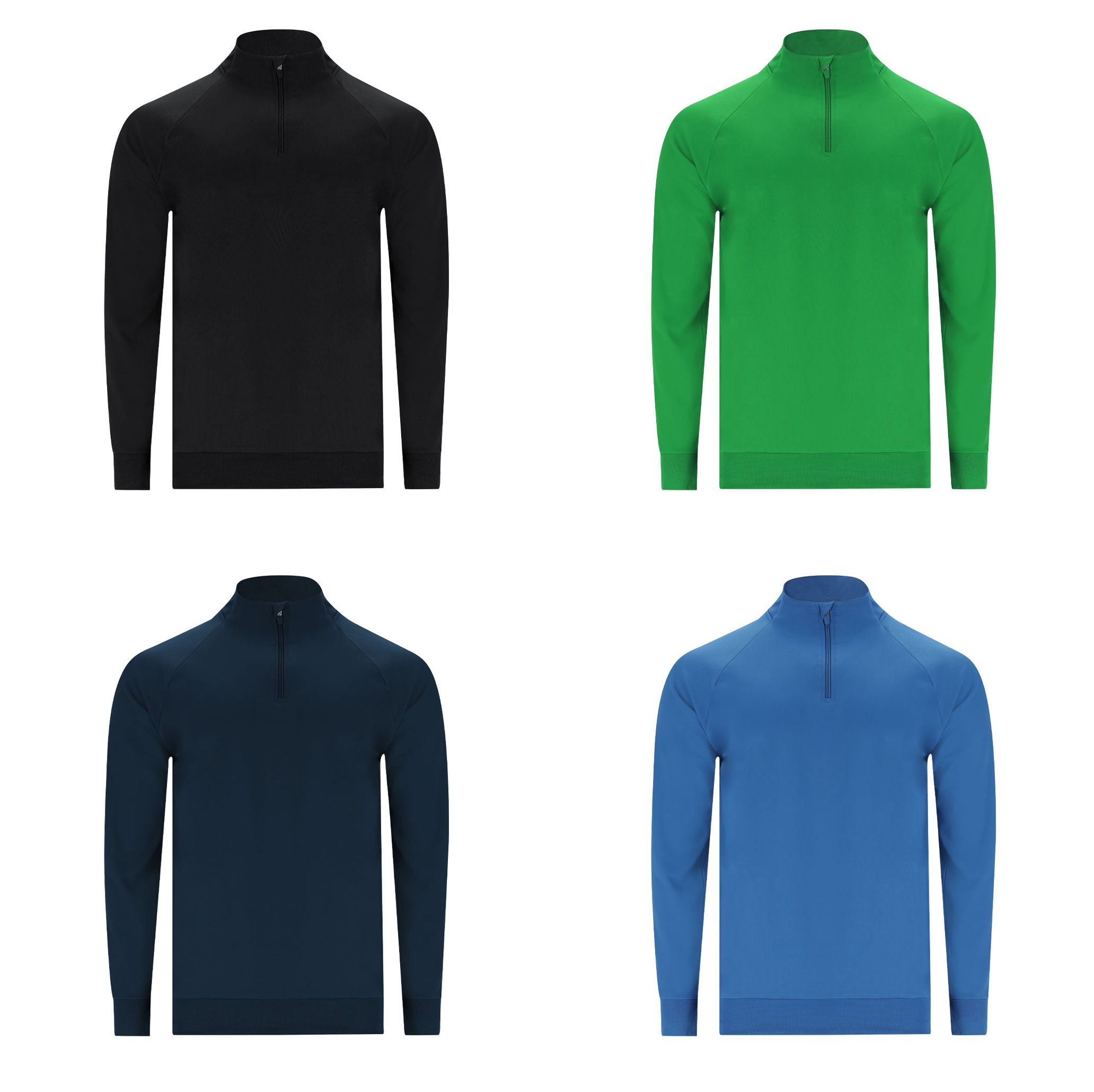 Sudadera técnica confeccionada con interior brushed perchado que aporta calidez y suavidad. Con manga ranglán y cuello con media cremallera y cubrecosturas de refuerzo a tono. Parte posterior del cuello, puños y bajo, confeccionados en canalé 1×1 para un ajuste cómodo. Incluye costuras laterales.