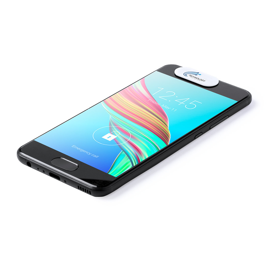 Tapa antibacteriana para cámara de dispositivo móvil, diseñada para proteger la privacidad. Con adhesivo 3M reutilizable y presentada en bolsa individual.
